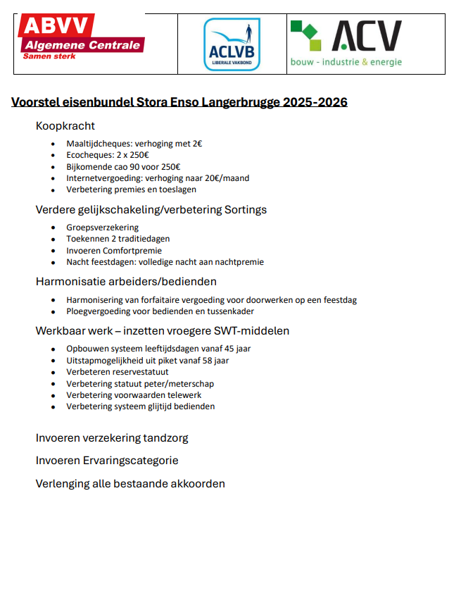 Deze week hebben de vakbonden de gemeenschappelijke eisenbundel ingediend voor de ondernemingsonderhandelingen. Er wordt nu gekeken naar een datum voor een eerste overleg met de directie.